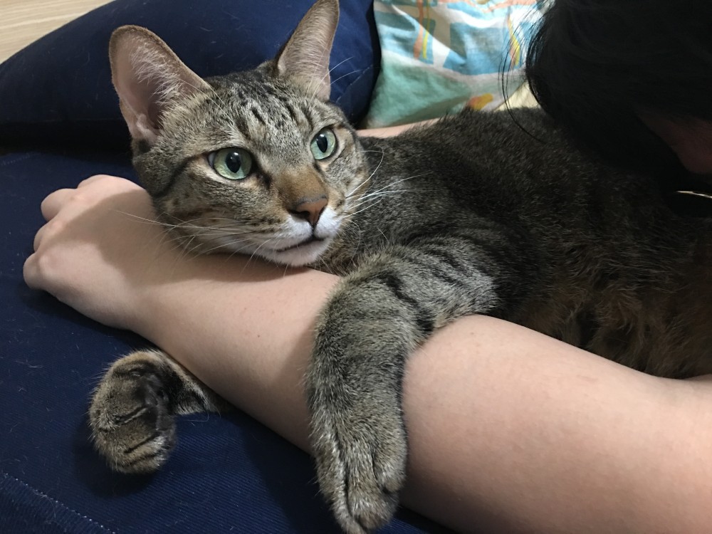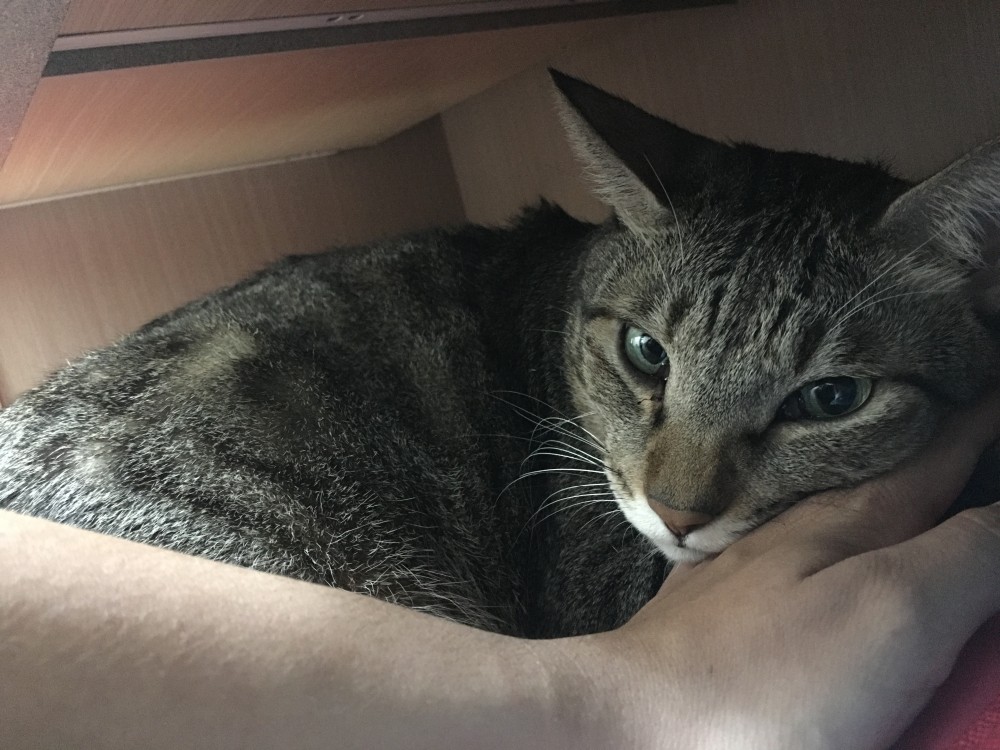 海膽是一隻10歲的虎斑貓,當初由一位愛媽在菜市場救起。